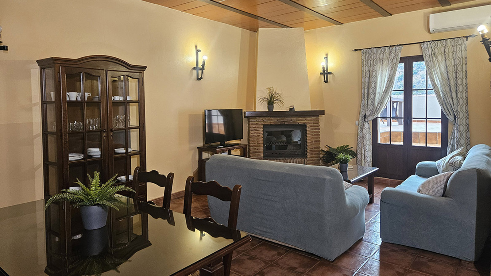 Salón: Chimenea, aire acondicionado, televisión y DVD